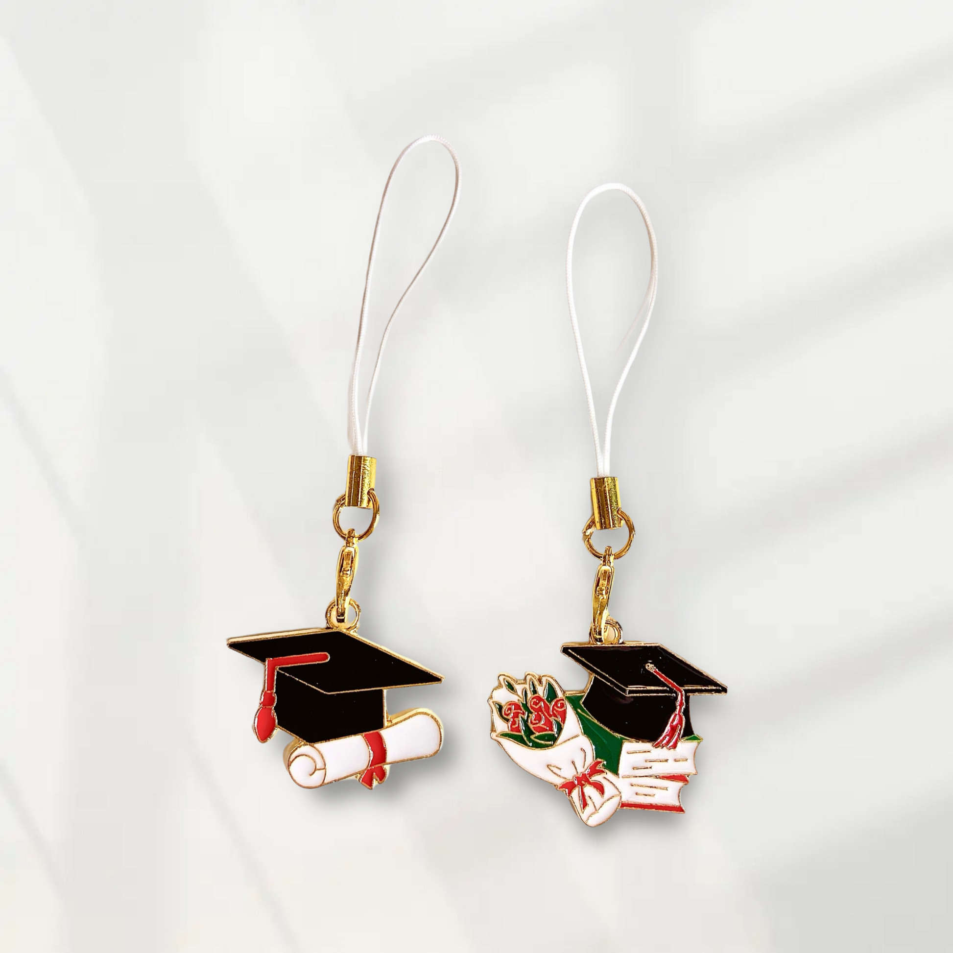 Celebrate your big milestone in style with these graduation-themed phone charms! Perfect as a gift for graduates or as a keepsake to remember your special day.