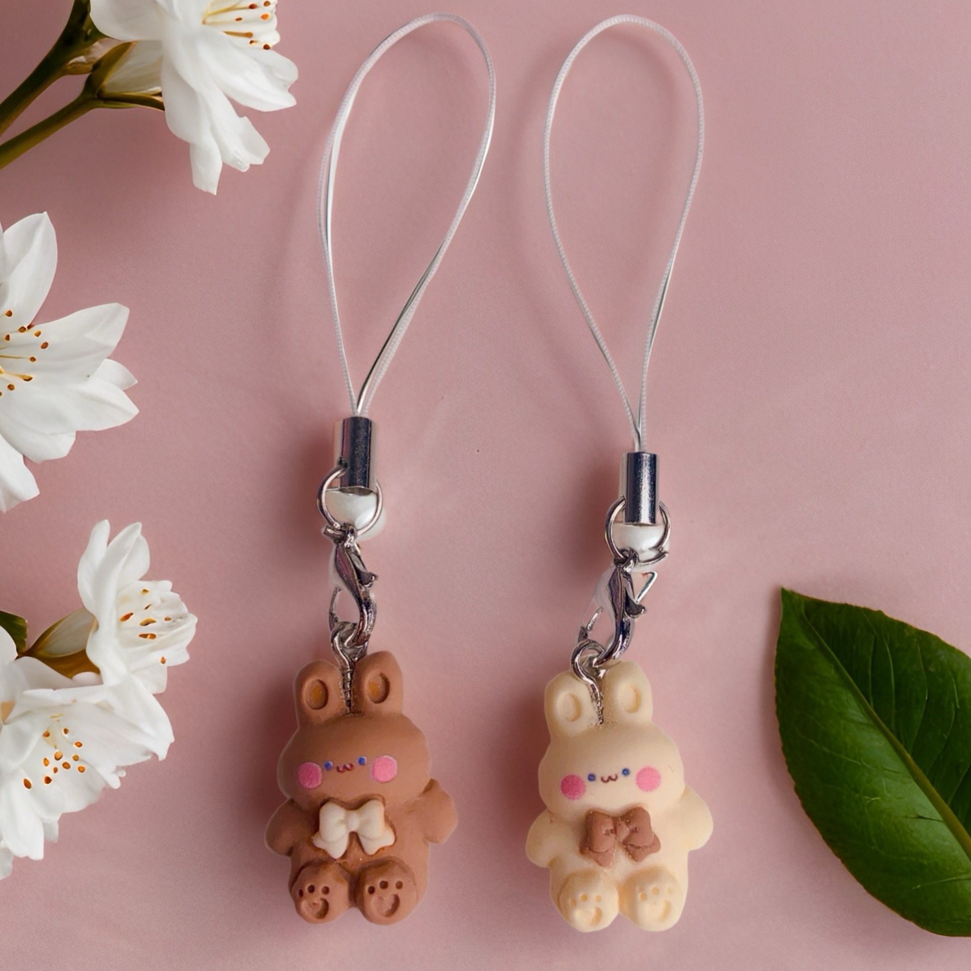 Carry a little sweetness wherever you go with this adorable bunny phone charm! ✨ Featuring a cute bunny holding a bow, this charm is perfect for adding a playful touch to your phone, Nintendo Switch, Kindle, iPad, or bag.