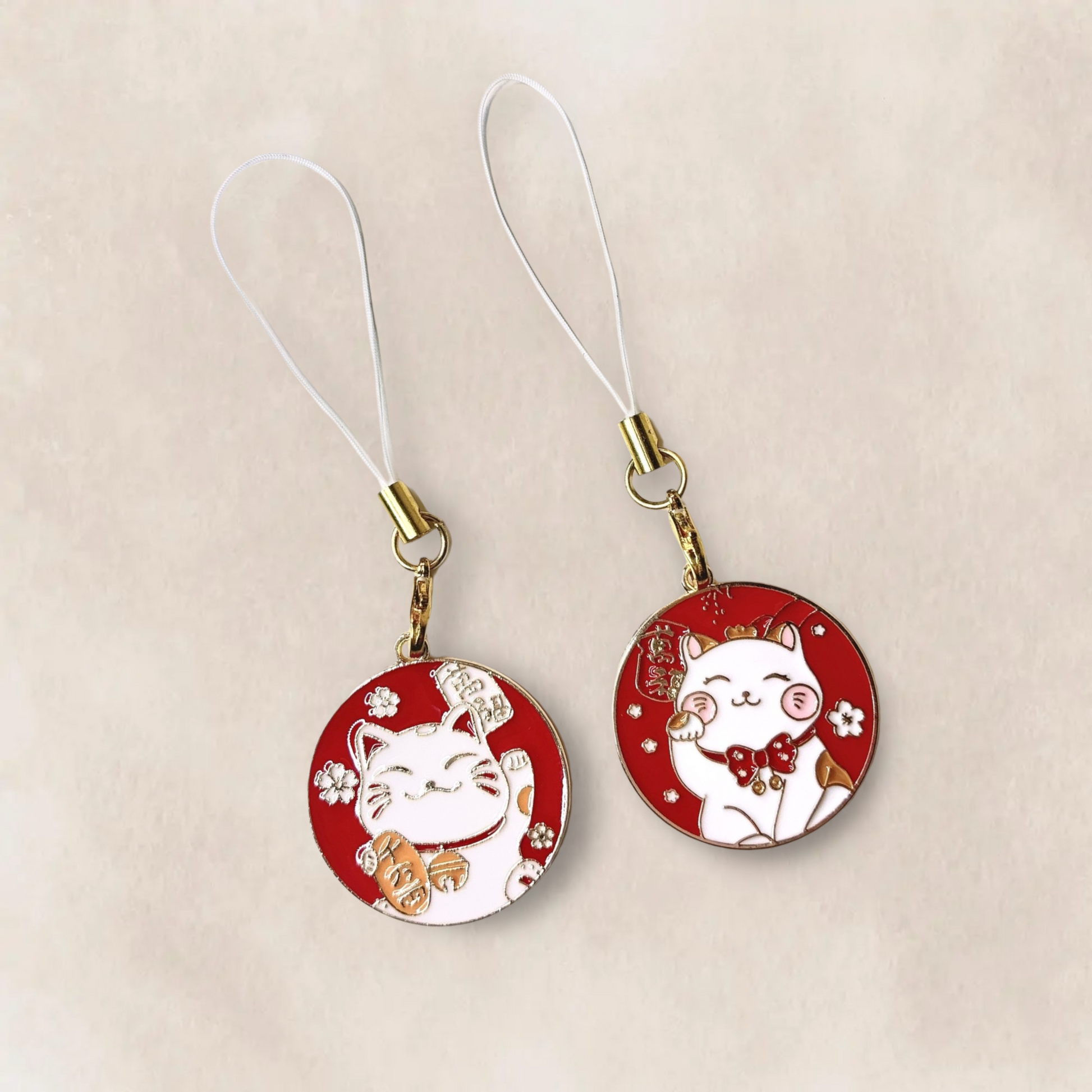 Bring good fortune and joy everywhere you go with theseย Lucky Cat (Maneki-neko) charms! โจ Choose from two adorable styles โ the male cat with his lucky coin for wealth and success, or the female cat with her sweet bow for happiness and love. Perfect for decorating your phone, Nintendo Switch, Kindle, iPad, or bag/keys.