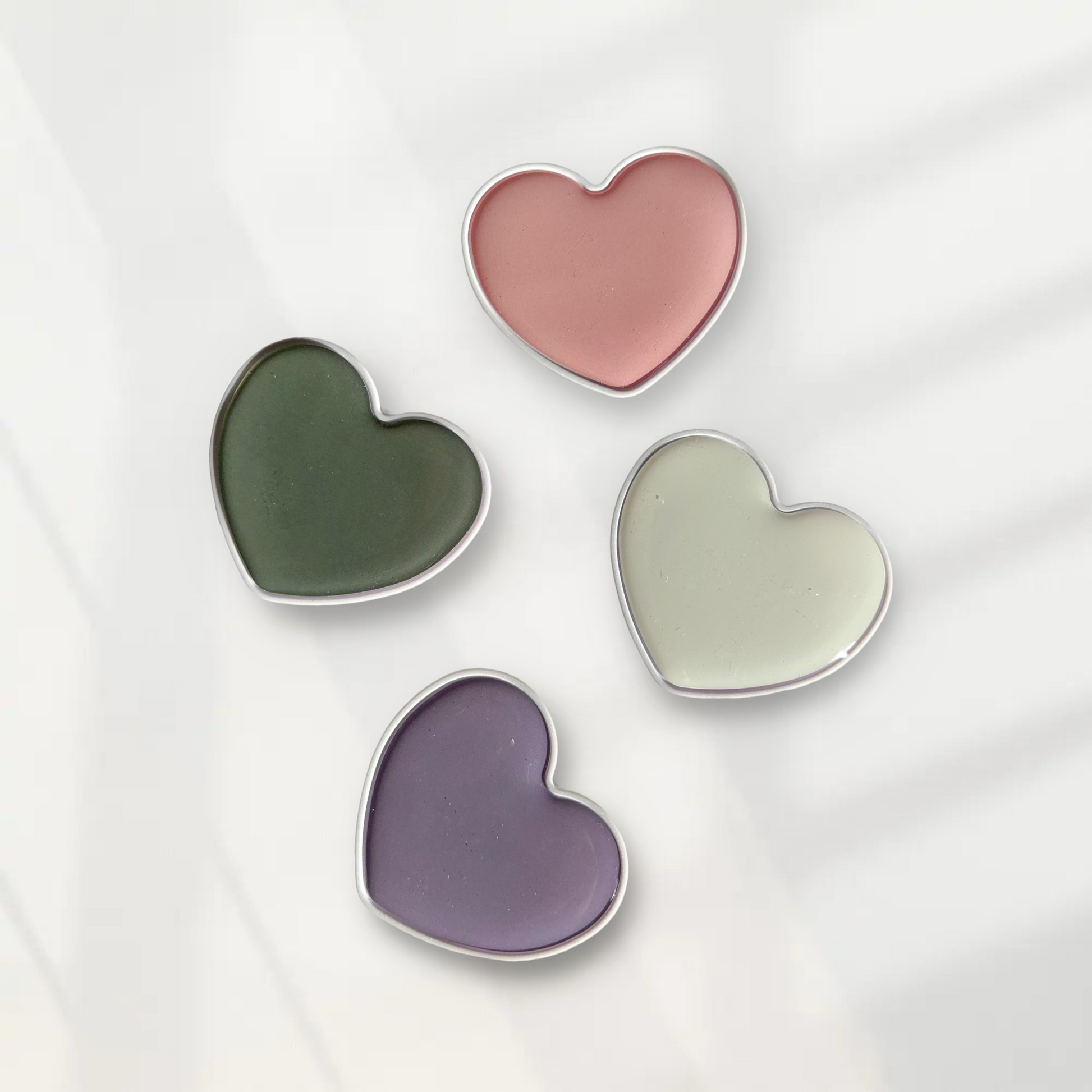 Soft pastel heart design β available in multiple colors (Pink, White, Purple, Green)