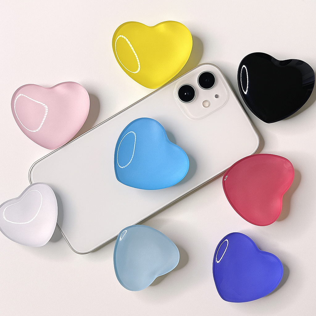 Our glossy heart phone grips are perfect for holding your phone or tablet comfortably. With 8 cute color options, theyβre great for selfies, scrolling, or decorating your case in style.