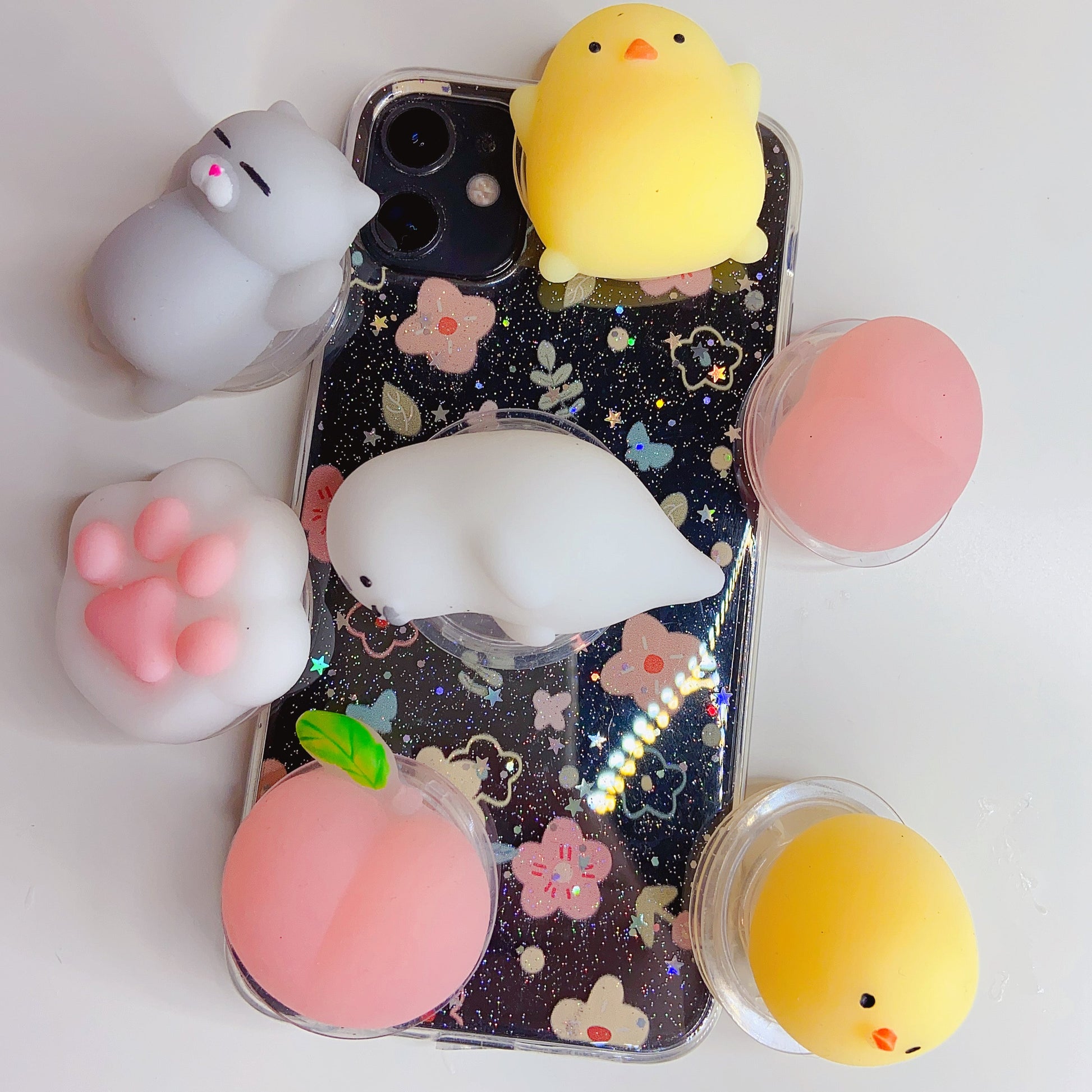 Make your phone irresistibly cute with this set of soft, squeezable phone grips! Perfect for fidgeting, gifting, or just adding a touch of kawaii charm to your everyday device.